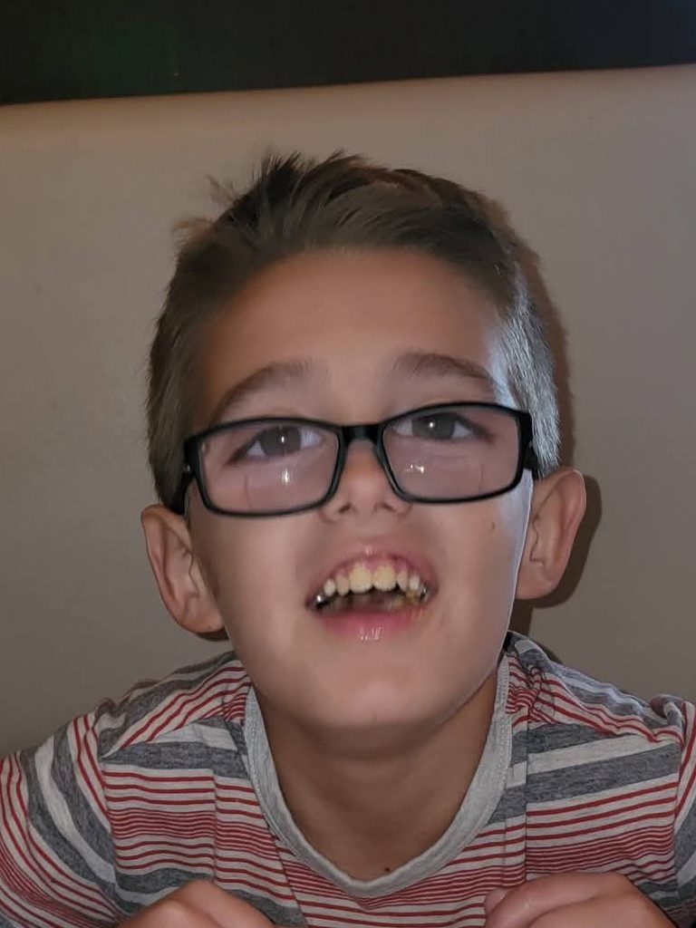 Lucas is now 8 years old. He can see well with glasses but is legally blind without them. He uses a keyboard with larger print, a magnifier, and other assistive technology for small print. He has low-muscle tone, GI issues and dental damage remaining from the chemo treatments.