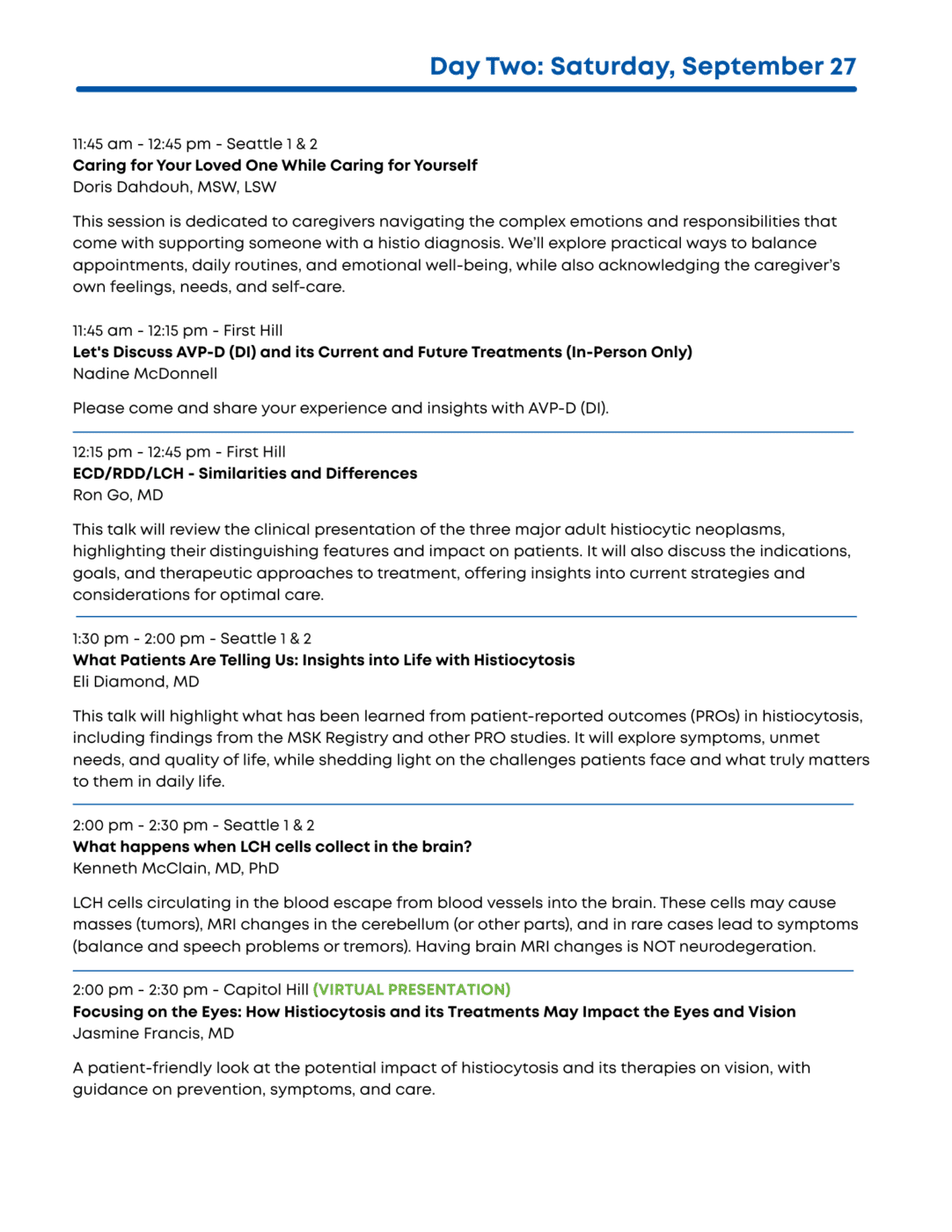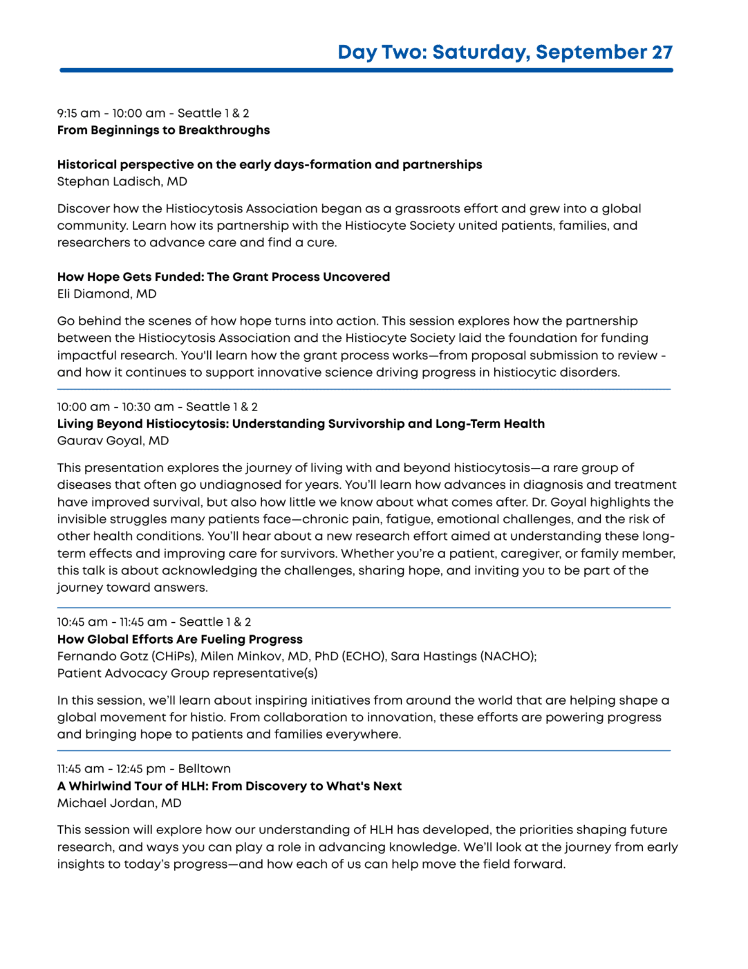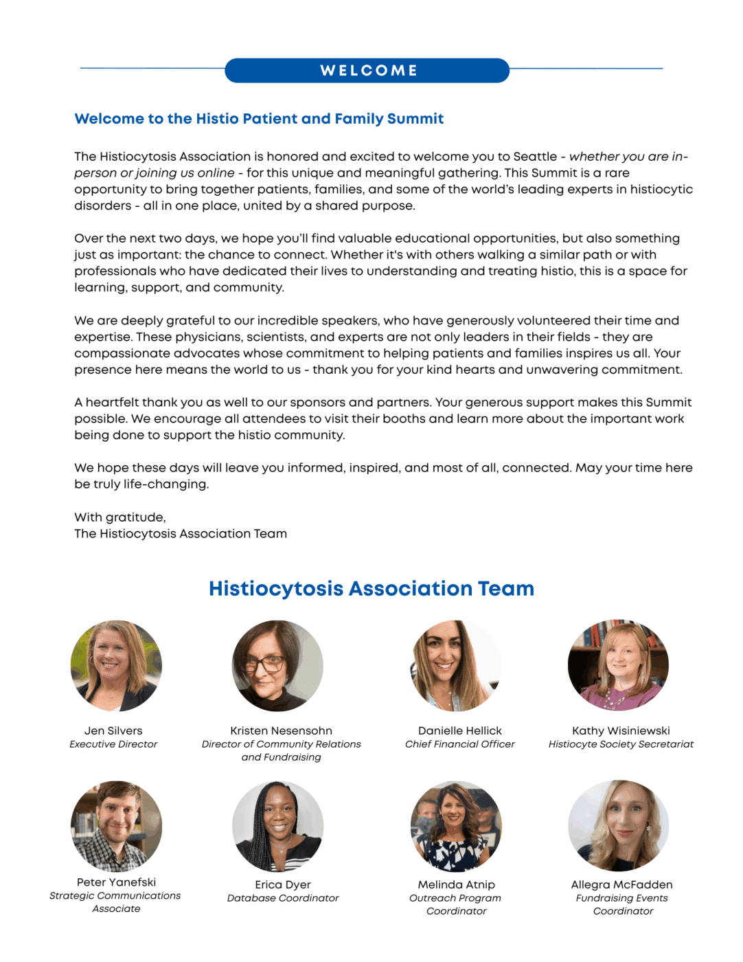 2025 Histiocytosis Patient and Family Summit Program Click on the first image below to click through the whole program. Or click here to download the pdf