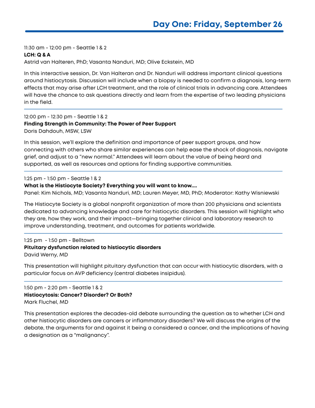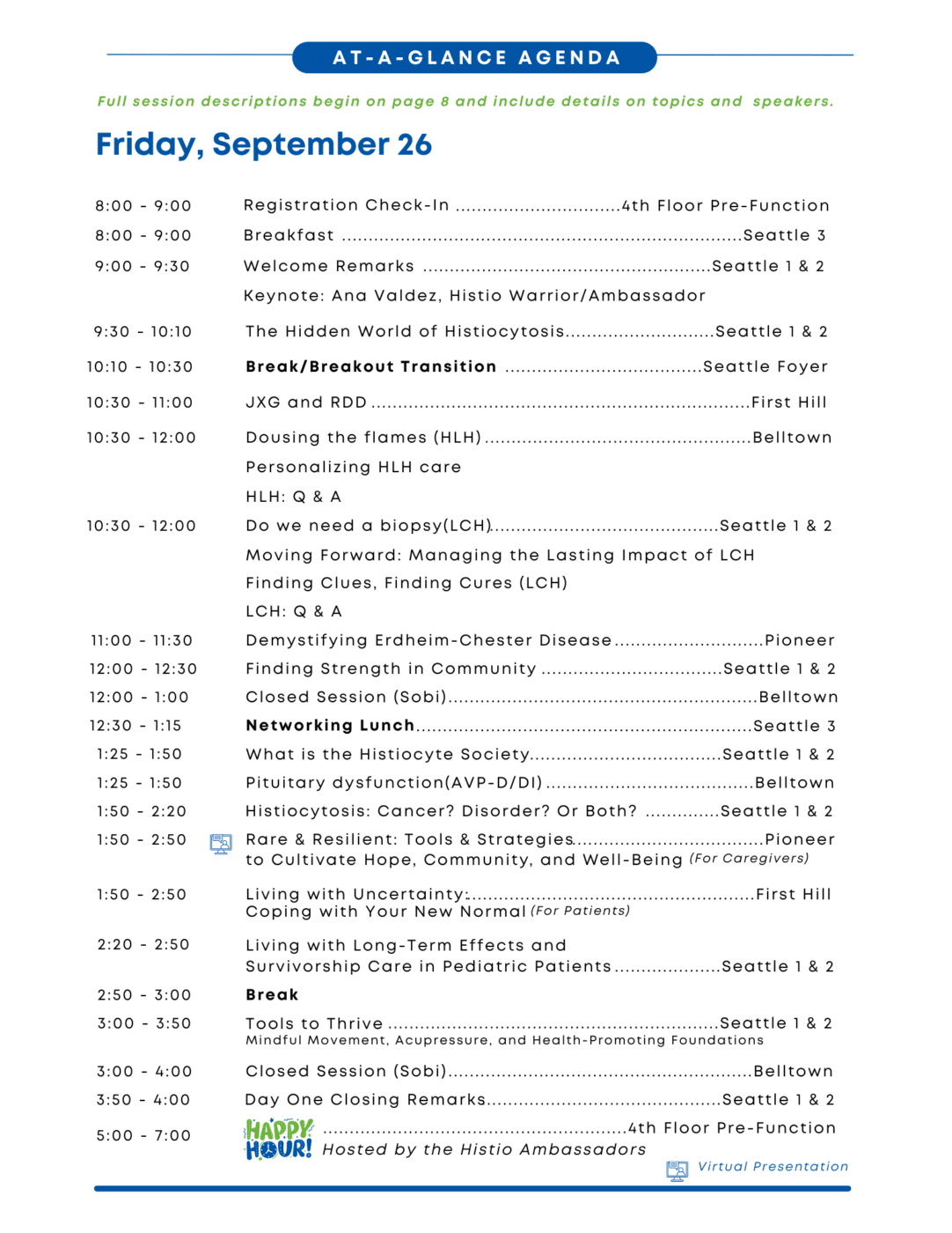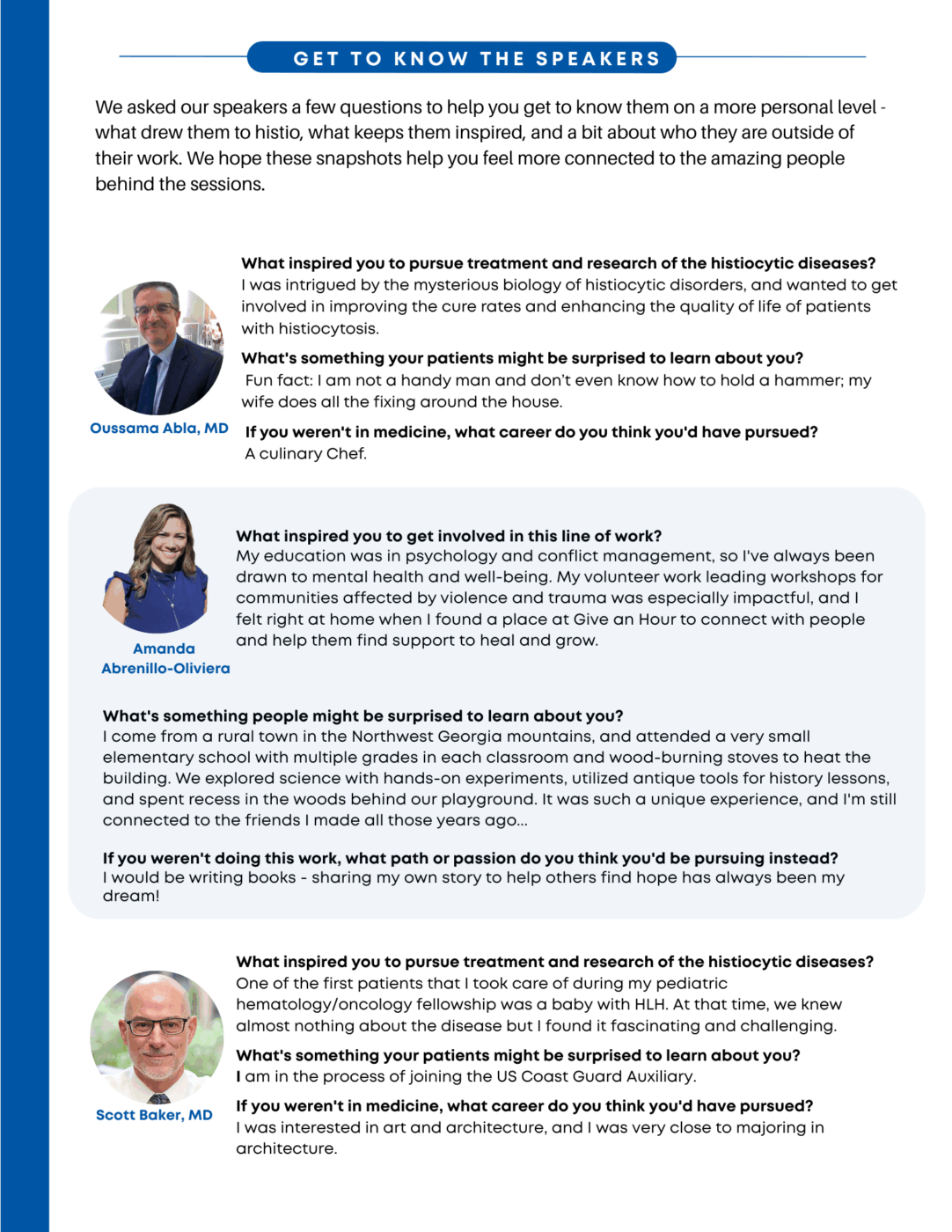 2025 Histiocytosis Patient and Family Summit Program Click on the first image below to click through the whole program. Or click here to download the pdf
